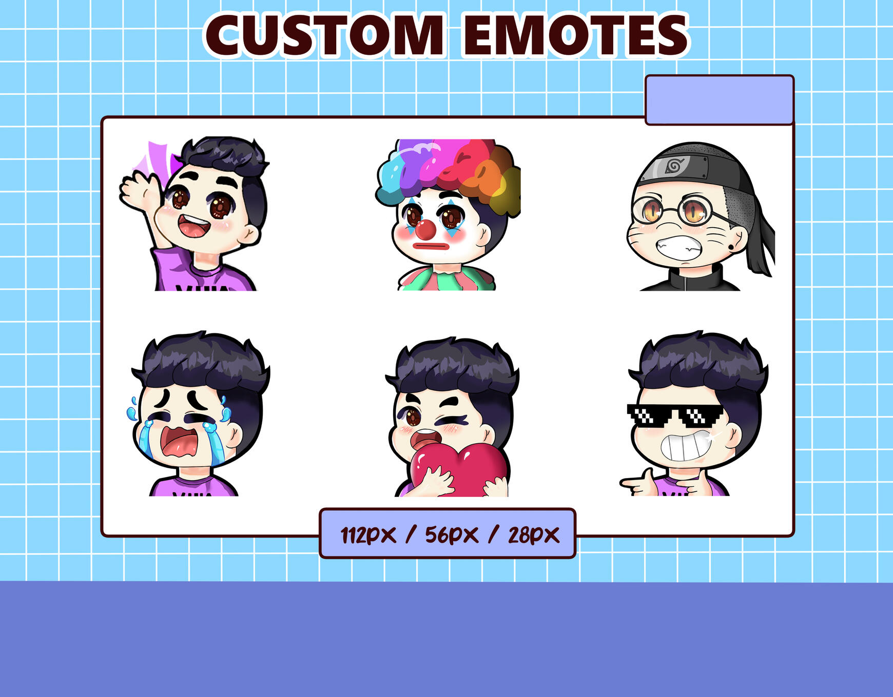 You will receive: 112px, 56px, and 28px of transparent PNG files (Twitch size).